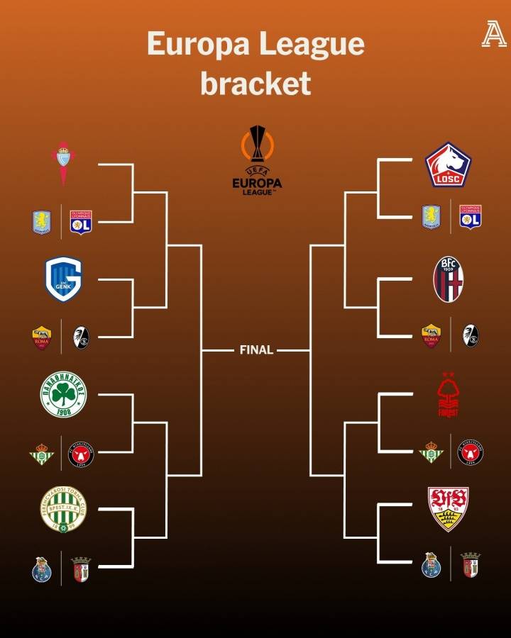 本赛季欧联杯16强: